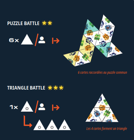 Combinez au plus vite 2 cartes triangle pour former un personnage.